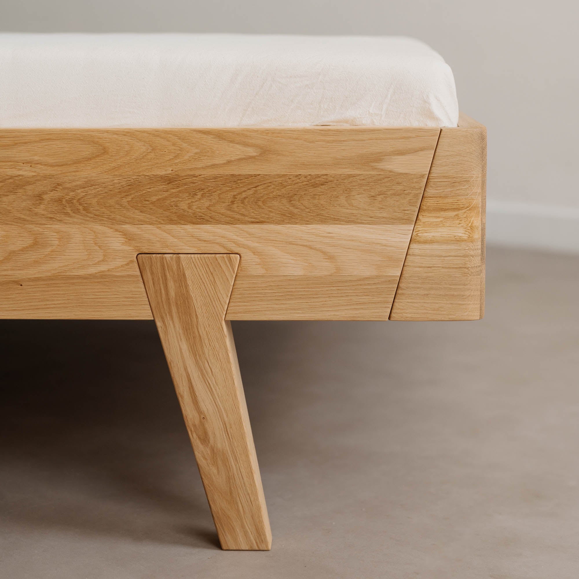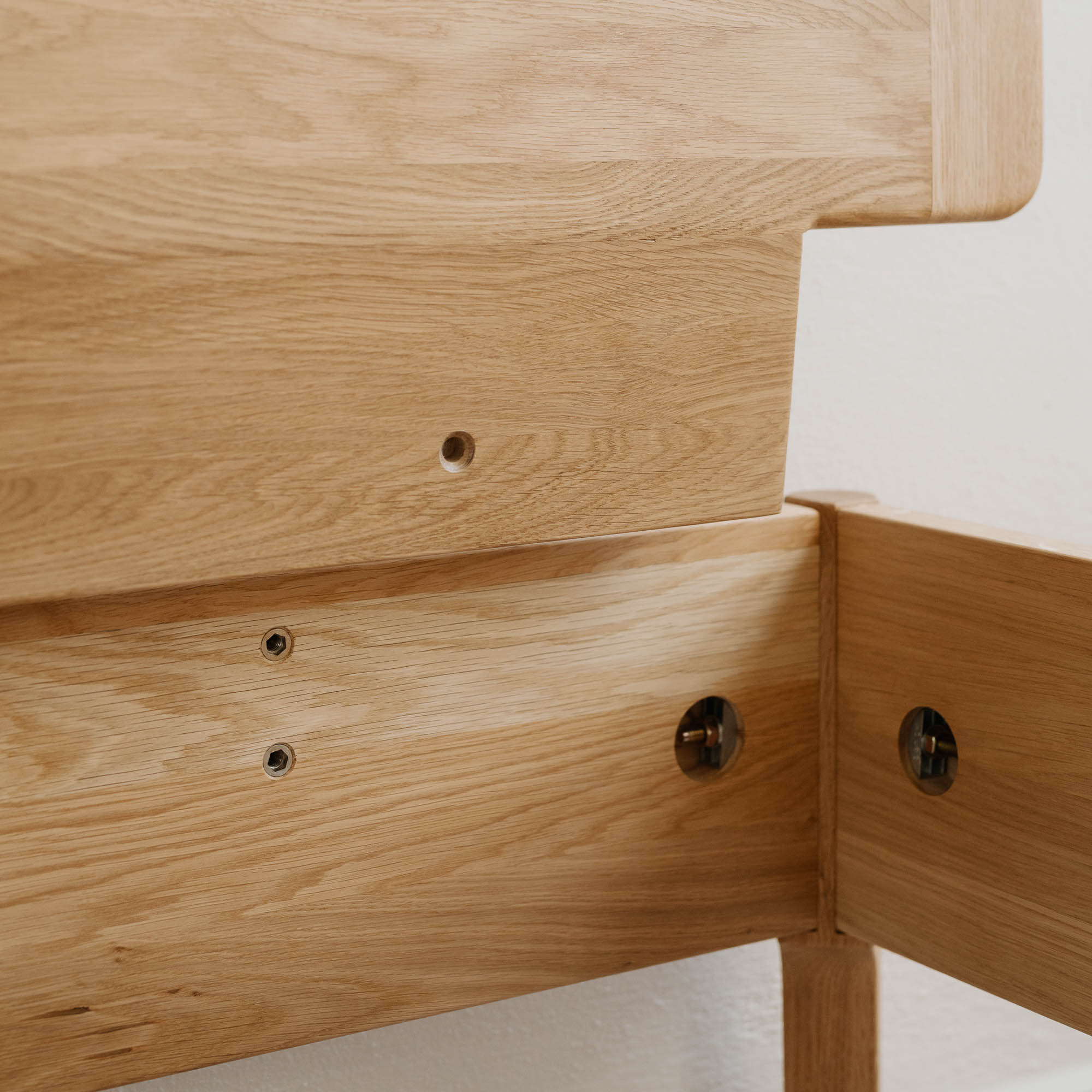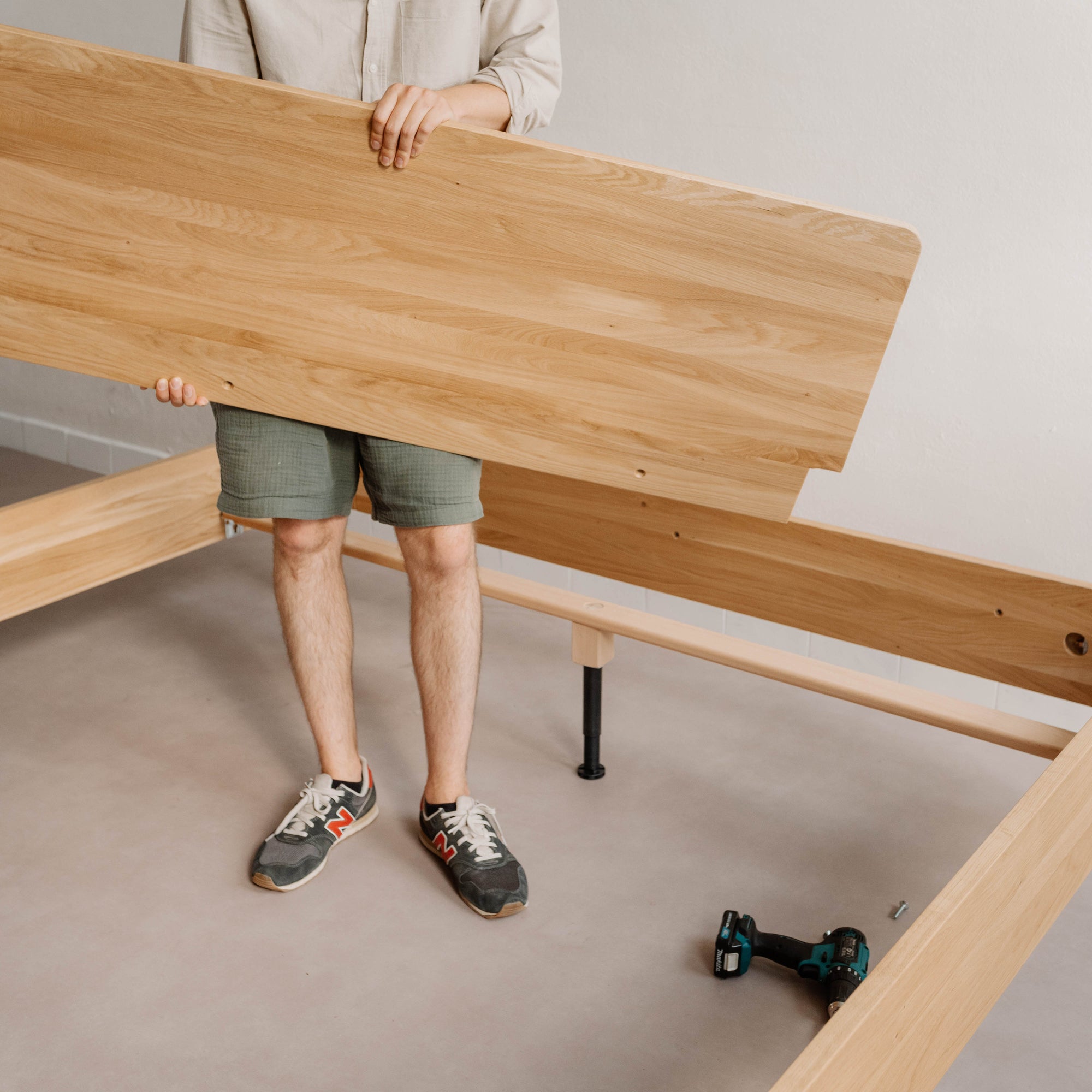 Při výrobě našich postelí volíme vždy celo-masivní dub pro svou lokálnost, smyslný vzhled, ale také požadovanou tvrdost. Naše dřevo je dostatečně prosušené, což zamezuje pozdější deformaci.