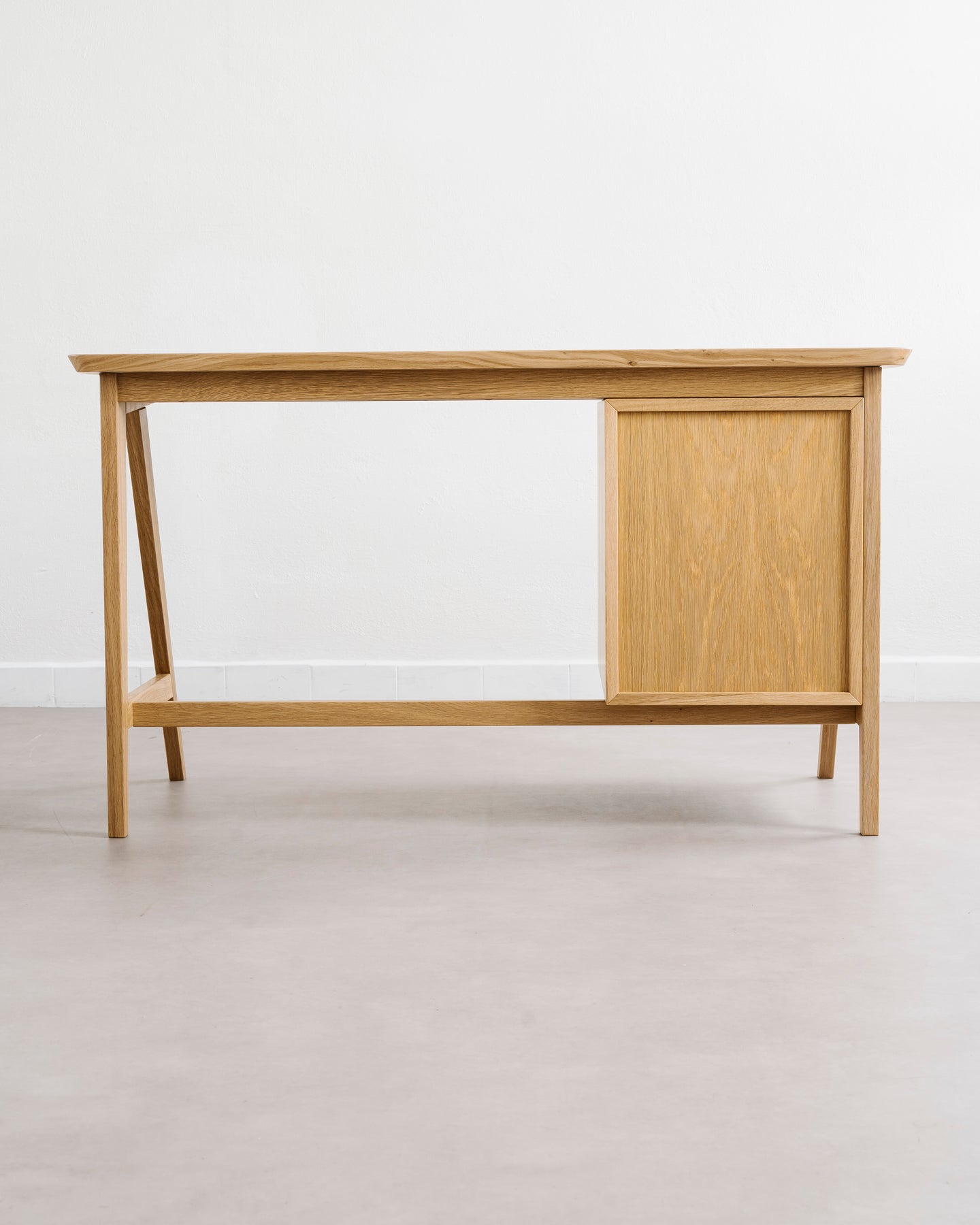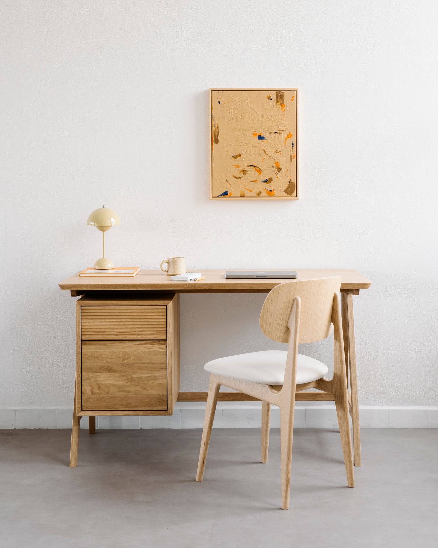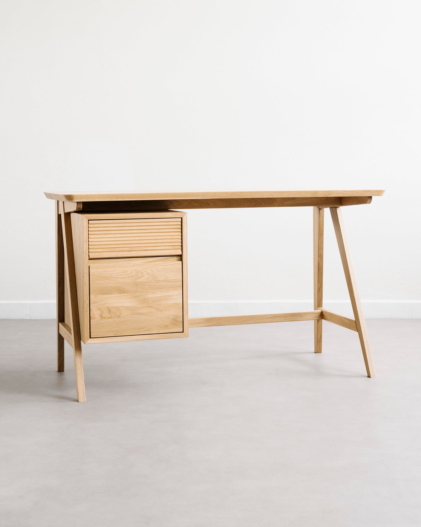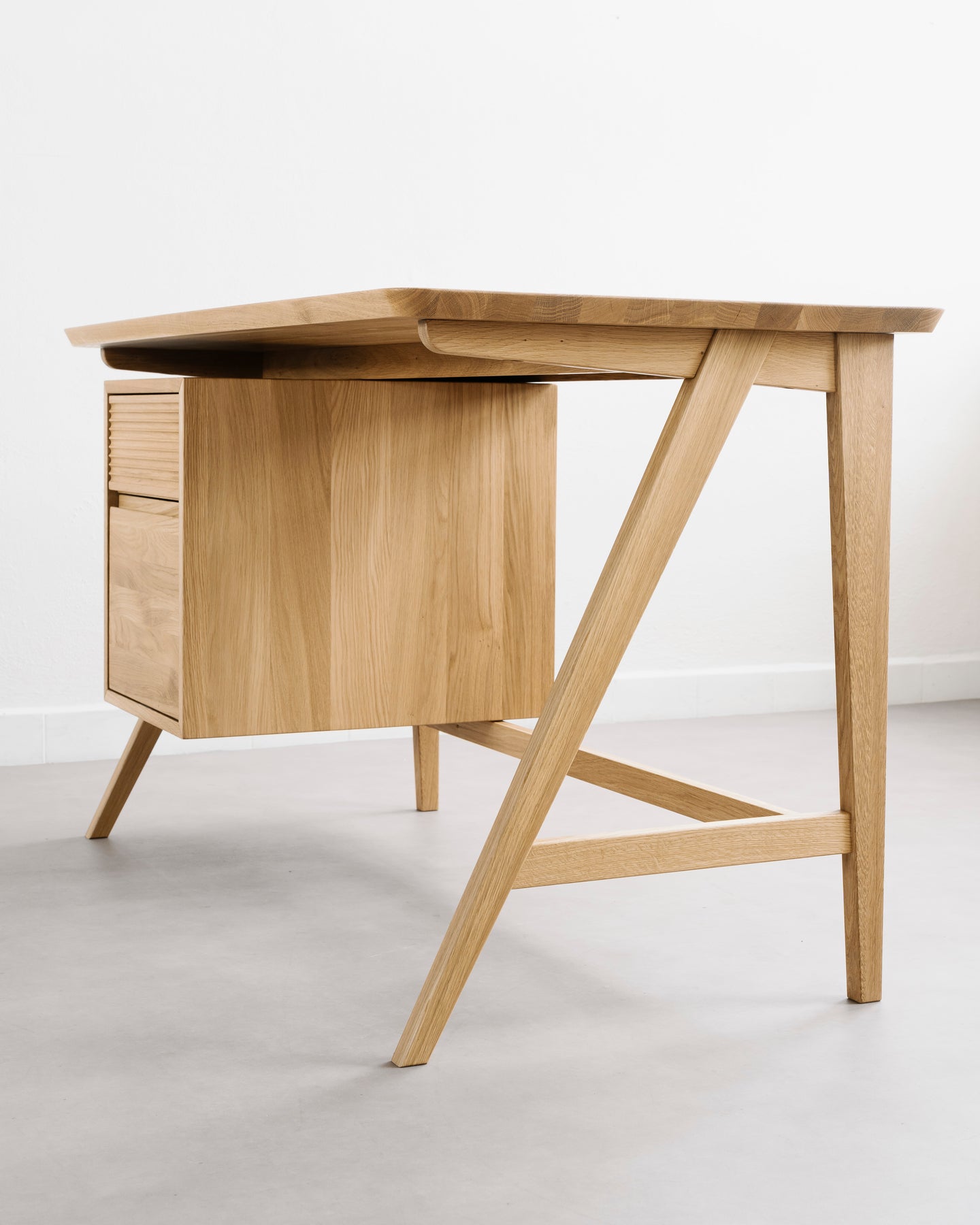 Pracovní stůl Bryno je přirozeným rozšířením vlastních návrhů studia TeakPeak. Je navržen pro soustředění a každodenní práci. Tvar je klidný a vyvážený, nestojí v cestě vaší kreativitě a snadno souzní s mnoha prostory. Detaily jsou střídmé ale funkční. Dubové masivní dřevo upomíná na hřejivost přírodních materiálů.