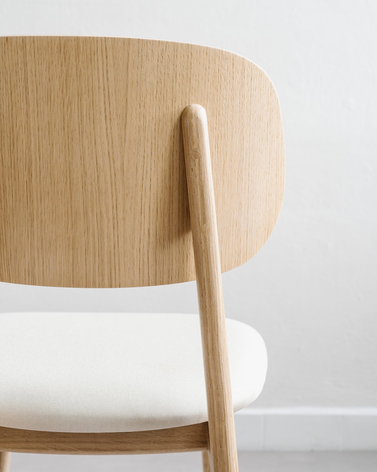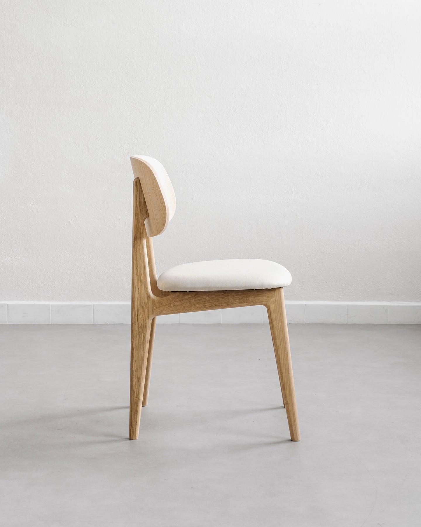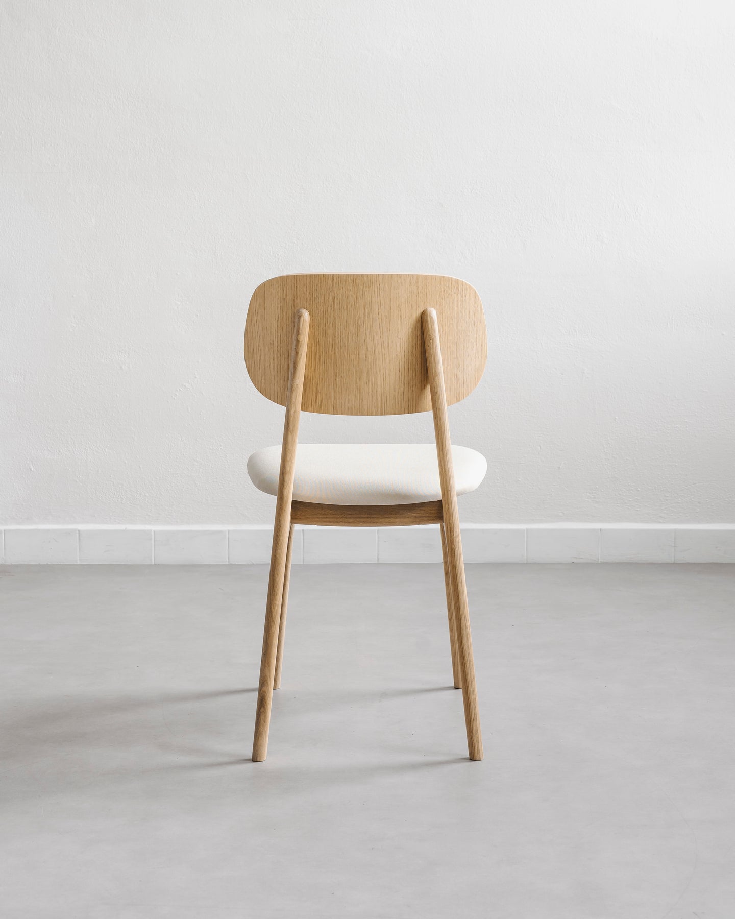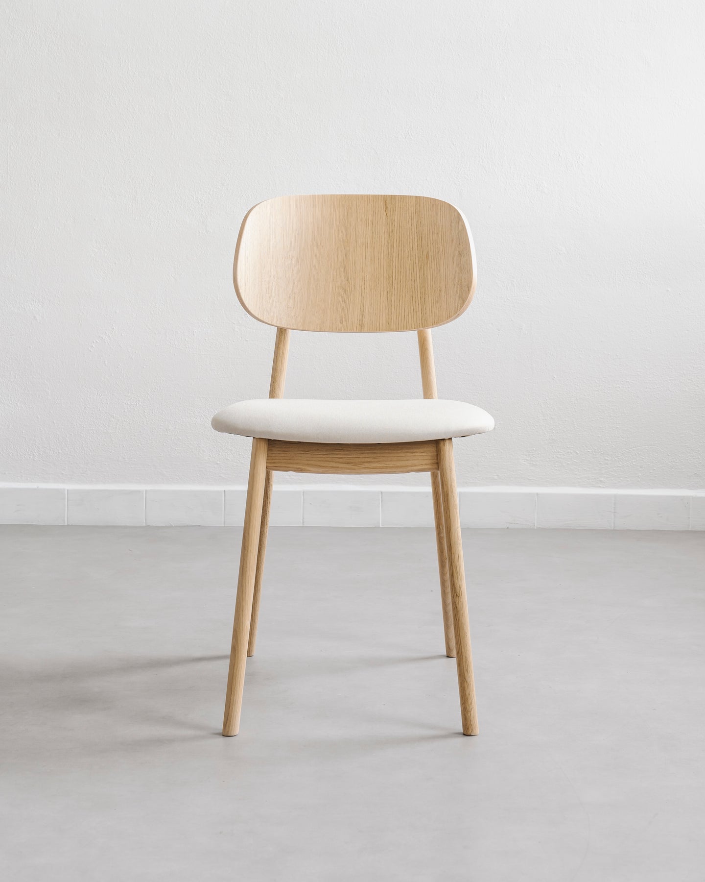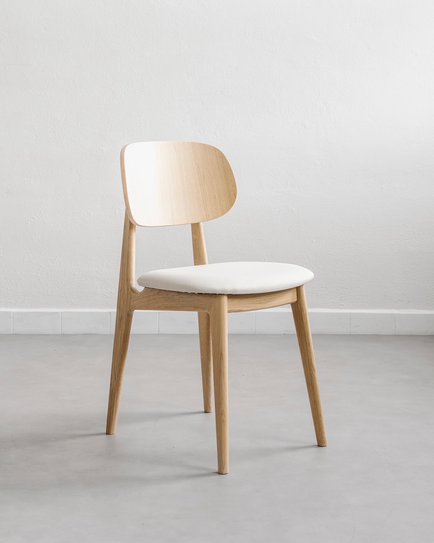 Konstrukce (dub masiv), polstrovaný sedák (látka), opěrka (dubová dýha, překližované dřevo).